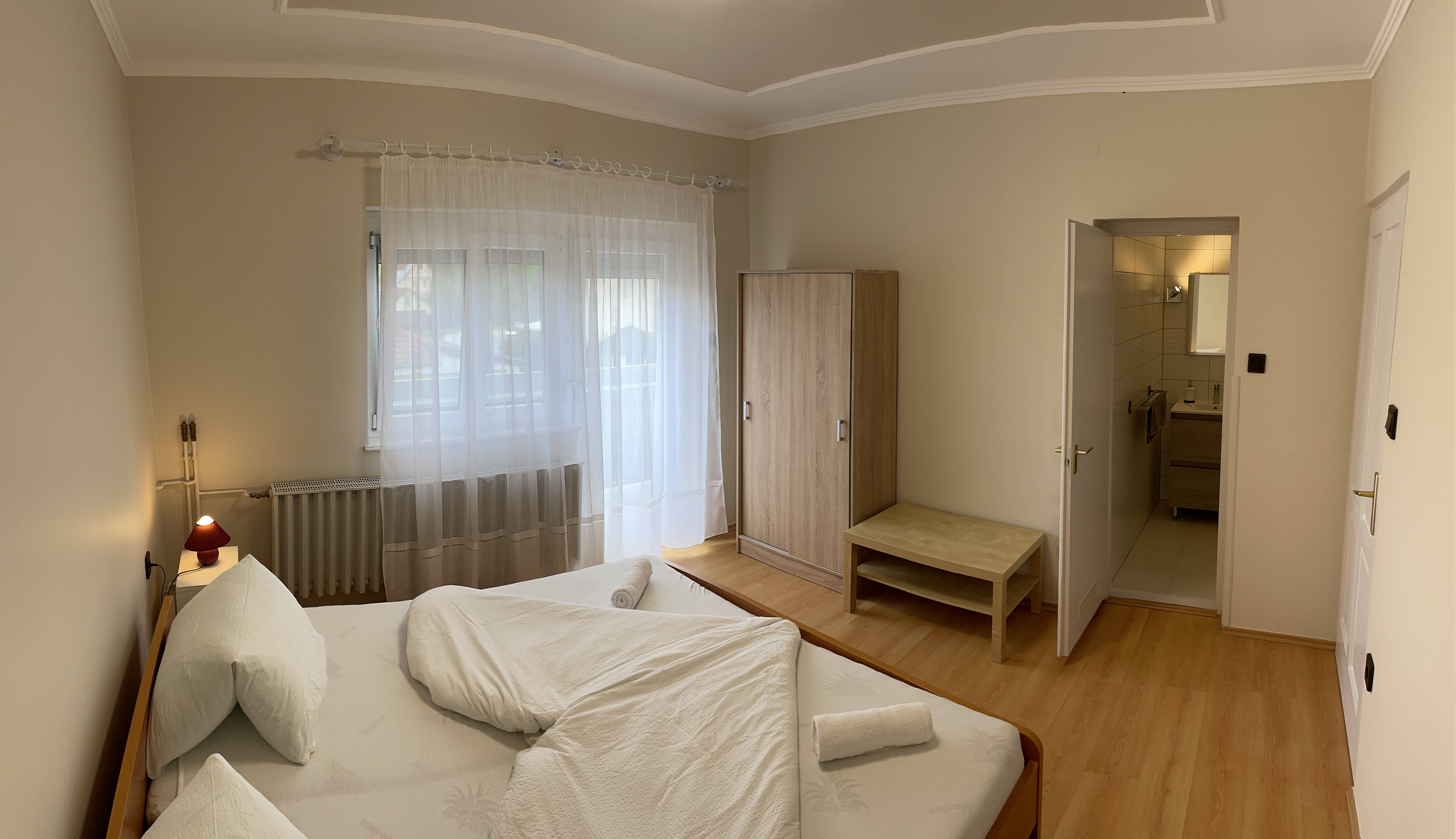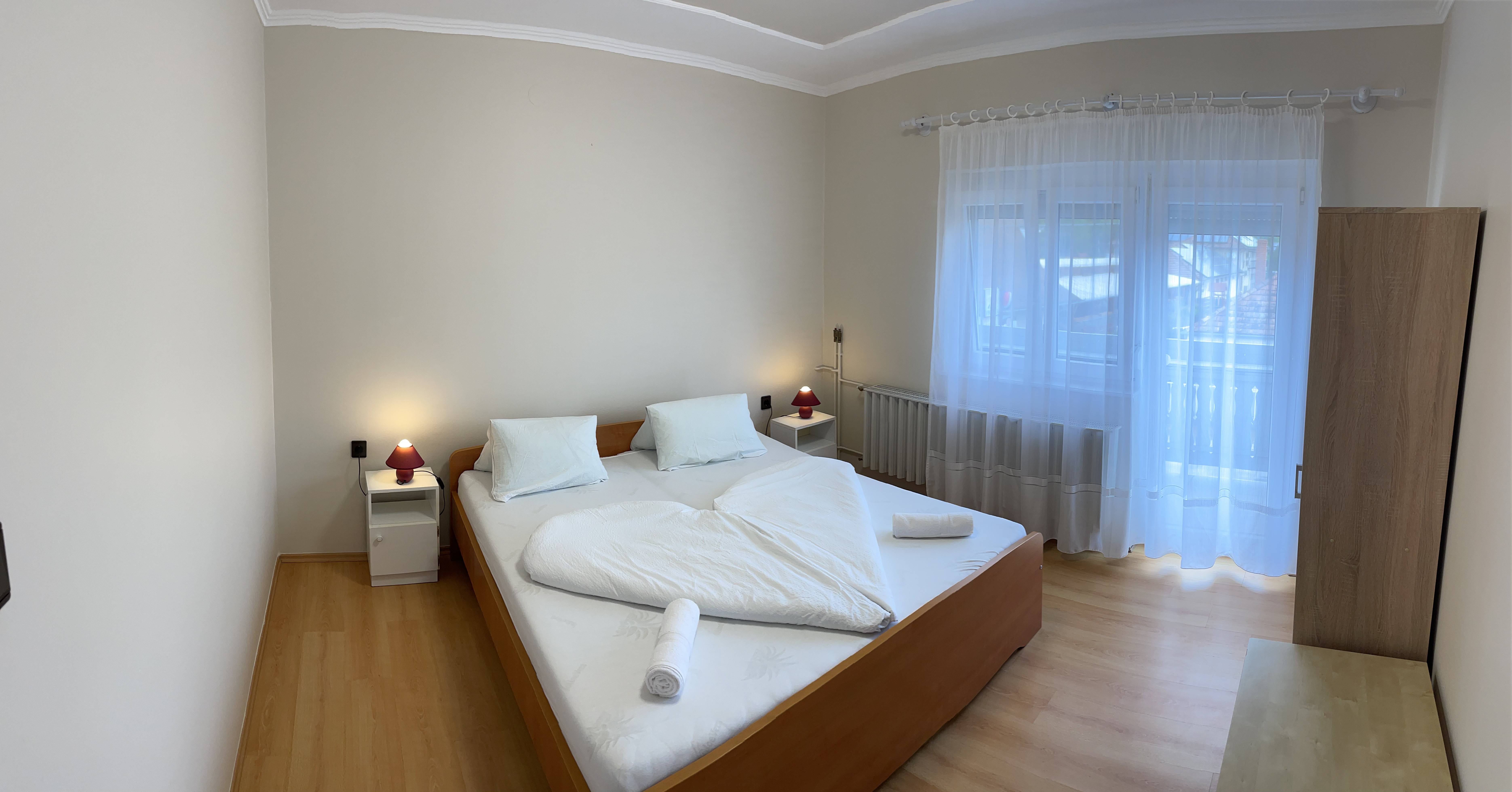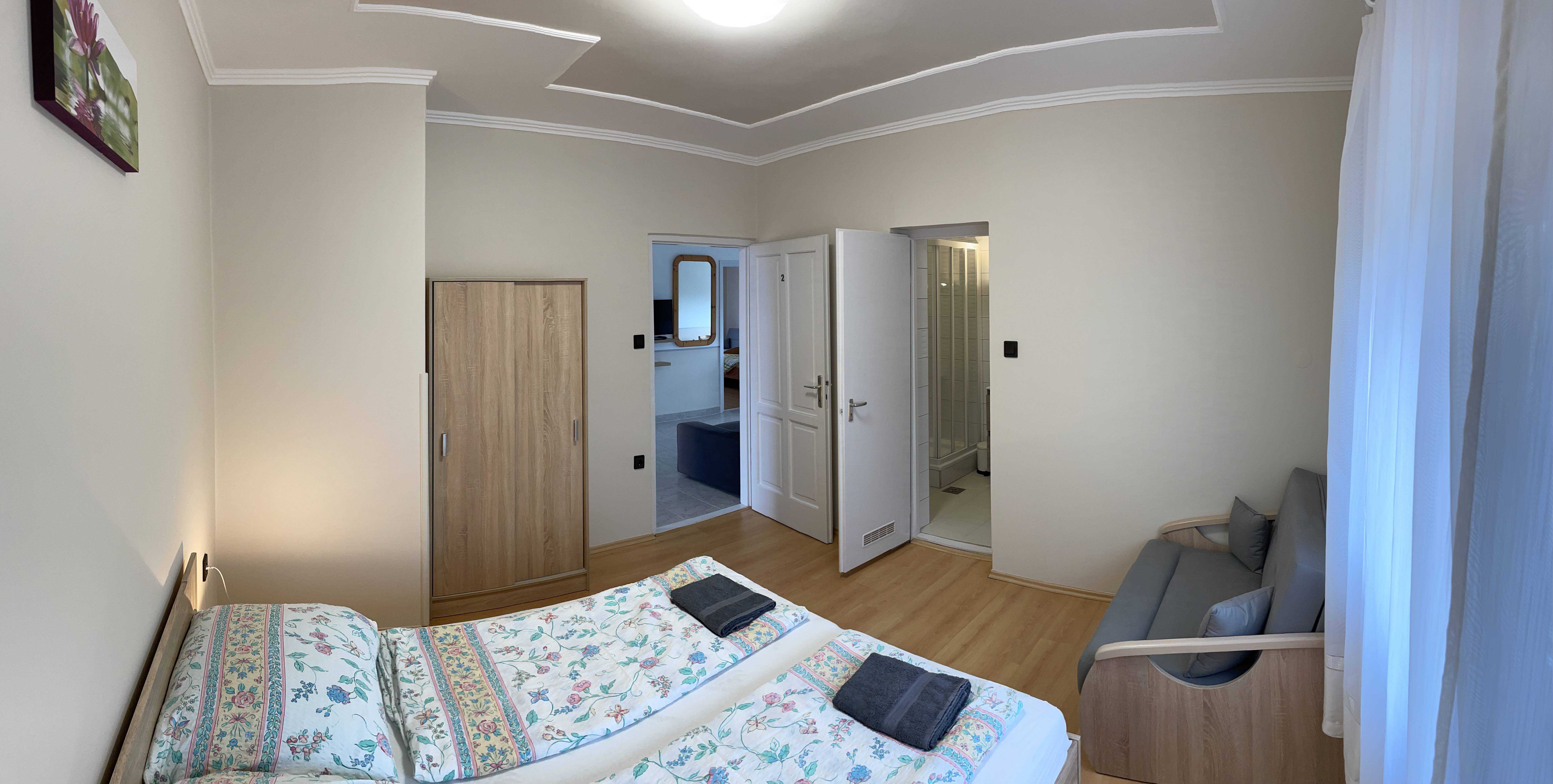 Minden apartman kényelmes franciaággyal, kanapéággyal és ruhásszekrénnyel ellátott. A szobákhoz saját zuhanyzós fürdőszoba tartozik, melyekhez törölközőt és hajszárítót biztosítunk.
