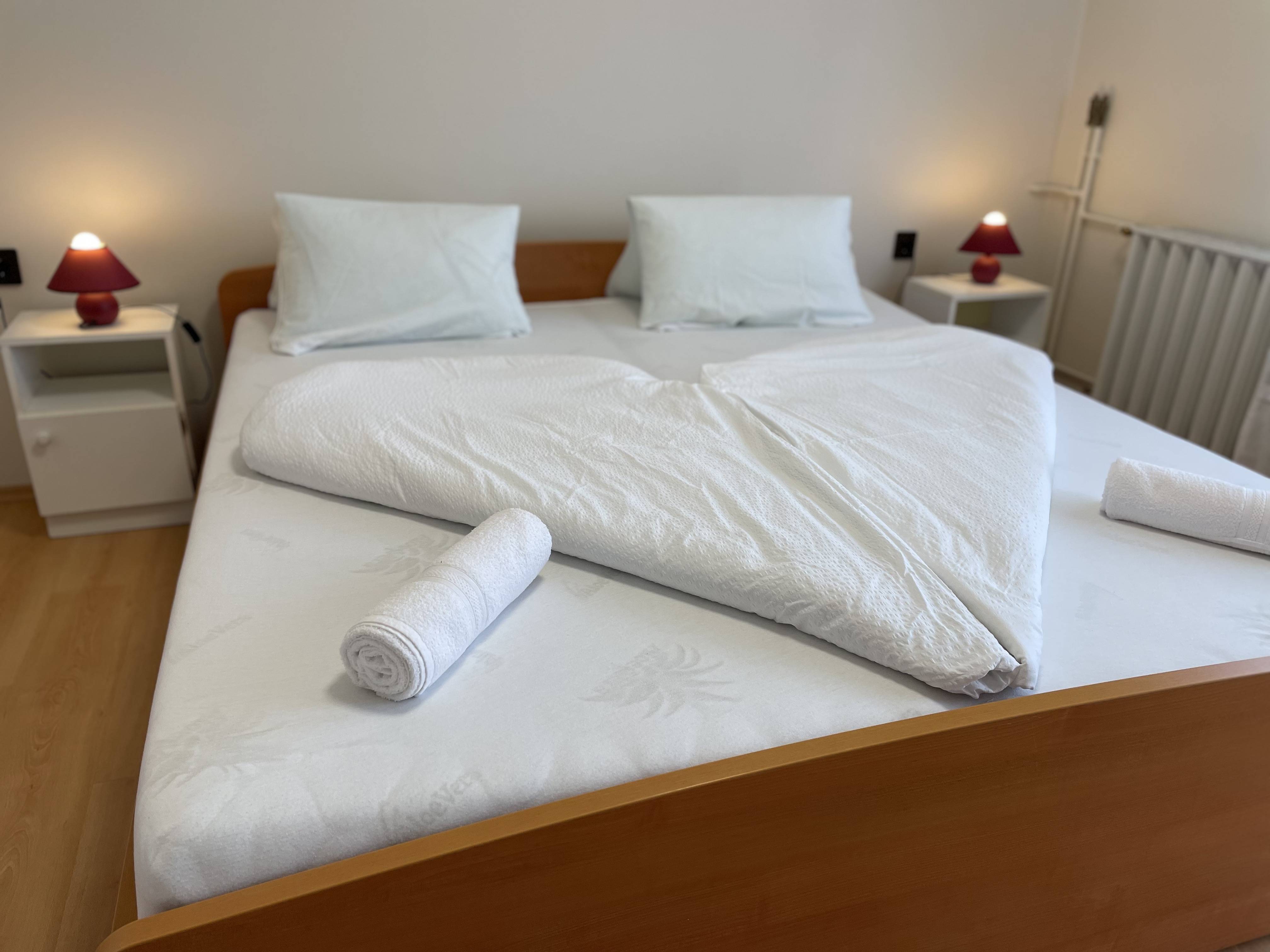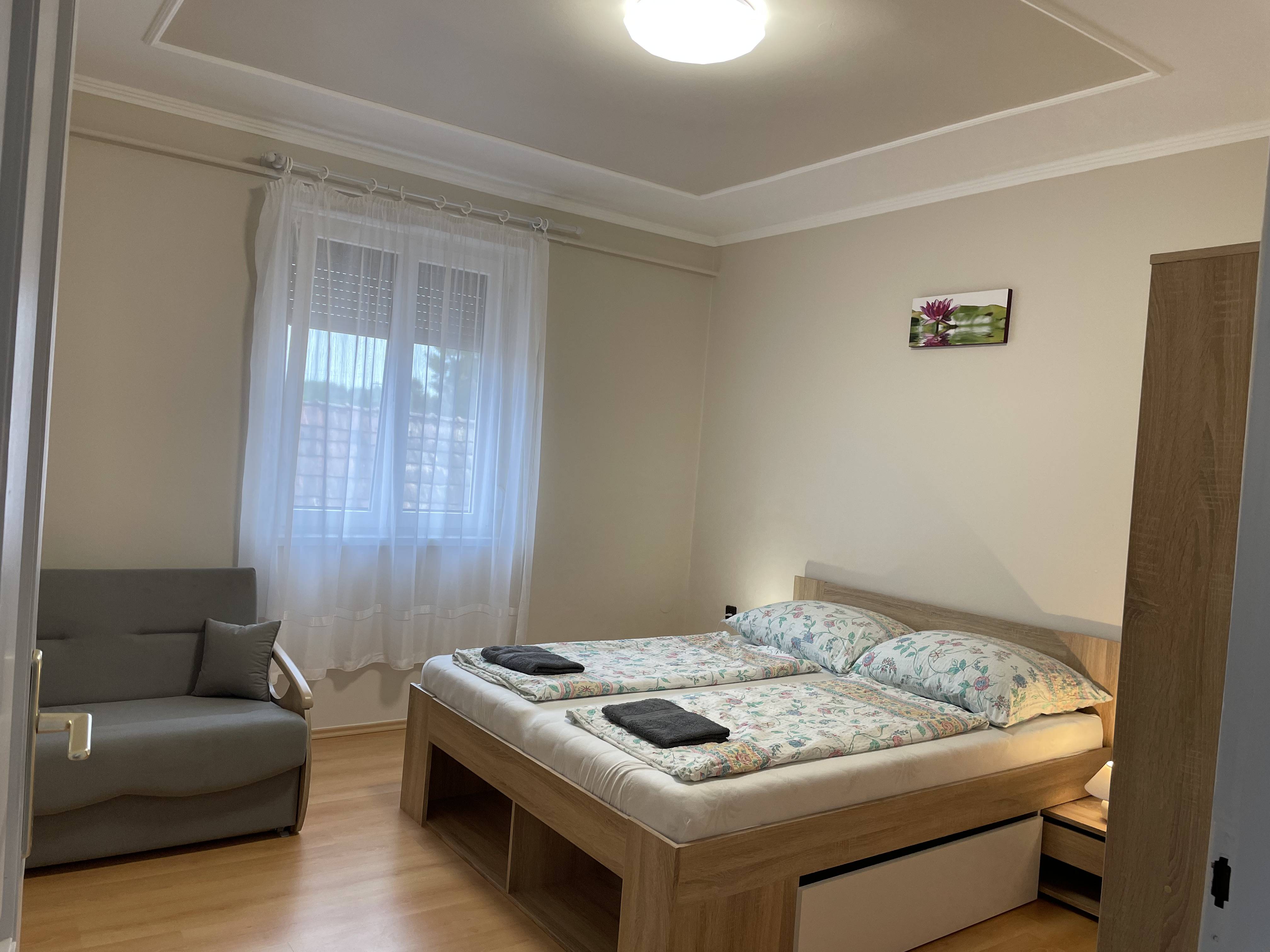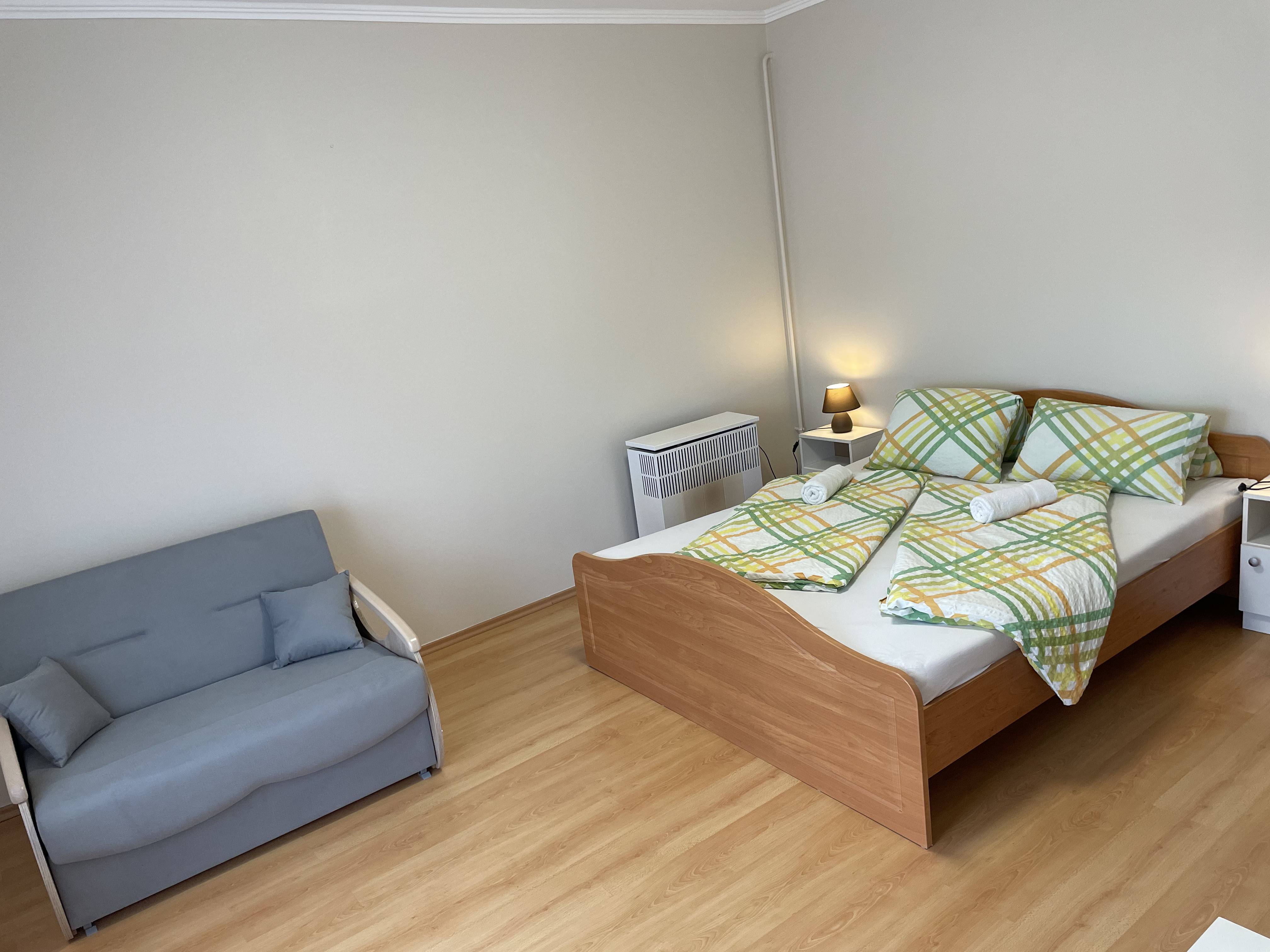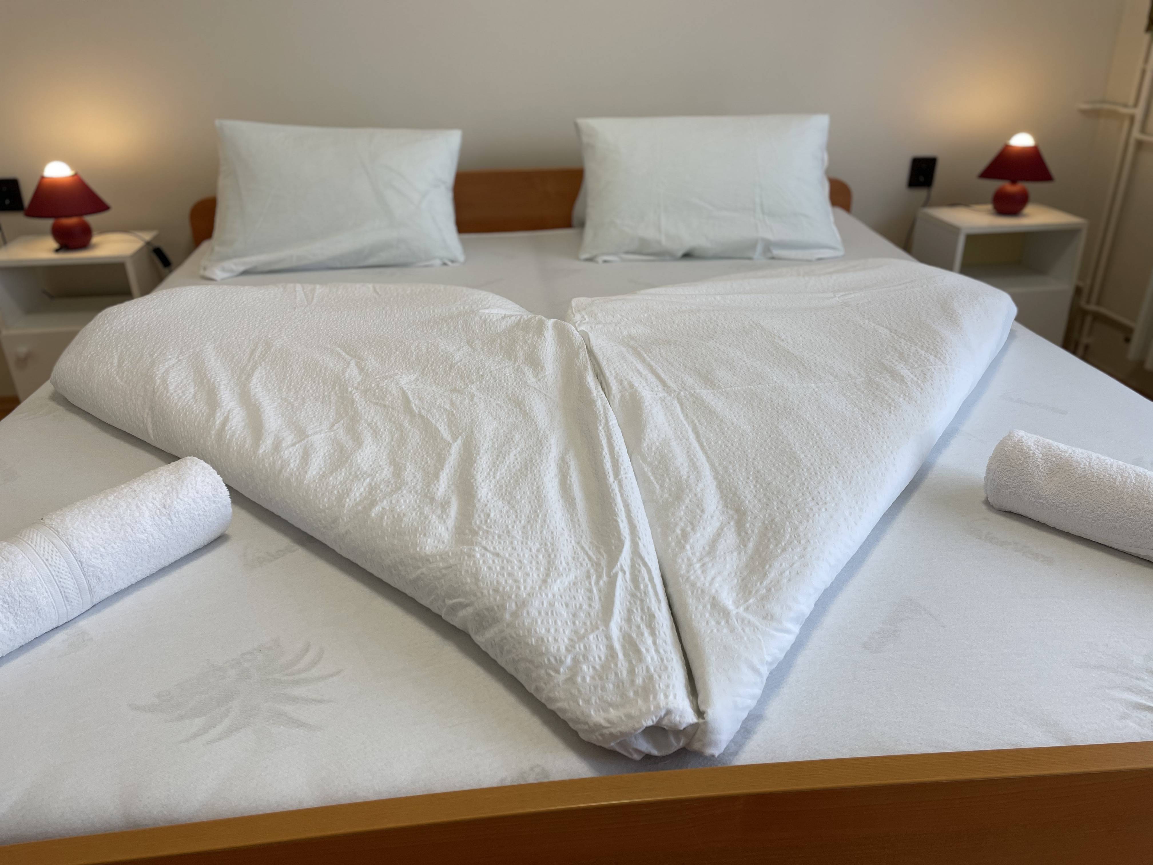 Minden apartman kényelmes franciaággyal, kanapéággyal és ruhásszekrénnyel ellátott. A szobákhoz saját zuhanyzós fürdőszoba tartozik, melyekhez törölközőt és hajszárítót biztosítunk.